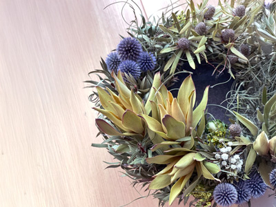 たっぷりのリュウカデンドロンをメインにした、落ち着いた雰囲気のドライフラワーリースです。自然の色合いが心を癒し、長く愛される存在感を持っています。お部屋のインテリアとして、お洒落にシーンを彩るだけでなく、大切な方へのギフトとしてもおすすめです。壁に飾ることで、空間にぬくもりを与え、テーブルの上に置くことで新たな魅力を引き出します。心地よい自然の素材感が、穏やかな時間を演出します。